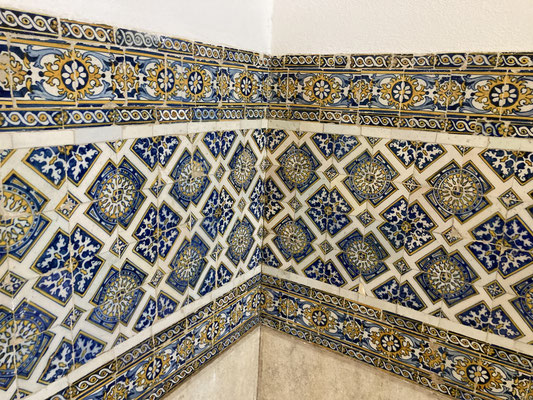 Für uns geht es nun - stets von Remodelados, den klassischen Straßenbahnen Lissabons, auf engstem Terrain begleitet - steil bergauf in Richtung Graça, einem Viertel, von dem wir schon im vergangenen Jahr ganz fasziniert waren, da er große Streetart-Wandgemälde an Häuserwänden bereit hält und so unprätenziös wie angenehm untouristisch daherkommt... Wir besteigen den Miradouro da Senhora do Monte, von dem aus wir fantastische Weitsicht über die Stadt und bis weit über den Tejo hinaus haben, durchwandern den interessanten Kiez auf der Suche nach den besten Pastéis de Nata in der ansonsten unscheinbaren Pasteleria Saga (nach wie vor empfinden wir sie als die besten der Stadt!) und begeistern uns fortgesetzt an den wundervoll gekachelten Häusern hier, jenen auffälligen Reminiszenzen an die Mauren, die hier ansonsten - sieht man vom engen, an marokkanische Medinas erinnernden Gassengewirr einmal ab - kaum Zeugnisse, etwa architektonischer Natur, hinterlassen haben...