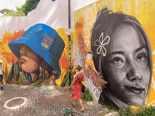 Wir schauen uns zunächst um und überfliegen die ausgegebenen Gerichte, bevor wir uns an ein atemberaubendes Limetten-Meeresfrüchte Risotto und eine in kleinen Schälchen servierte Muschel- und Fisch-Salatauswahl bei Marlene Vieira - nebenbei gesagt die Namensvetterin des neuen HSV-Stars ;-) - wagen. Sieht zum Hinknien aus und Leute, ich darf es auch so sagen: Es ist seit langem das Beste, was wir gegessen haben... Ein Traum von einem Risotto! Teuer? Nein, nicht einmal. Die Preise hier sind wirklich moderat, man wird sogar satt und man schmilzt - wie gesagt - dahin. Wer in dieser Stadt gut essen mag, der sollte den TimeOut-Market einplanen. Wir sind jedenfalls mehrfach hier! Noch die Info: Viele Köch*innen hier öffnen nur mittags (bis 15:30 Uhr und man zahlt immer mit Karte!)...